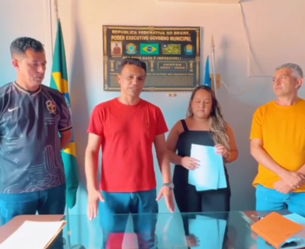 Dia 22 de abril, o prefeito Josué Alves, ao lado do professor Eliomar, da tesoureira Kelly e do supervisor Niltin, deu o pontapé inicial para um acordo histórico com os professores da rede municipal de ensino.